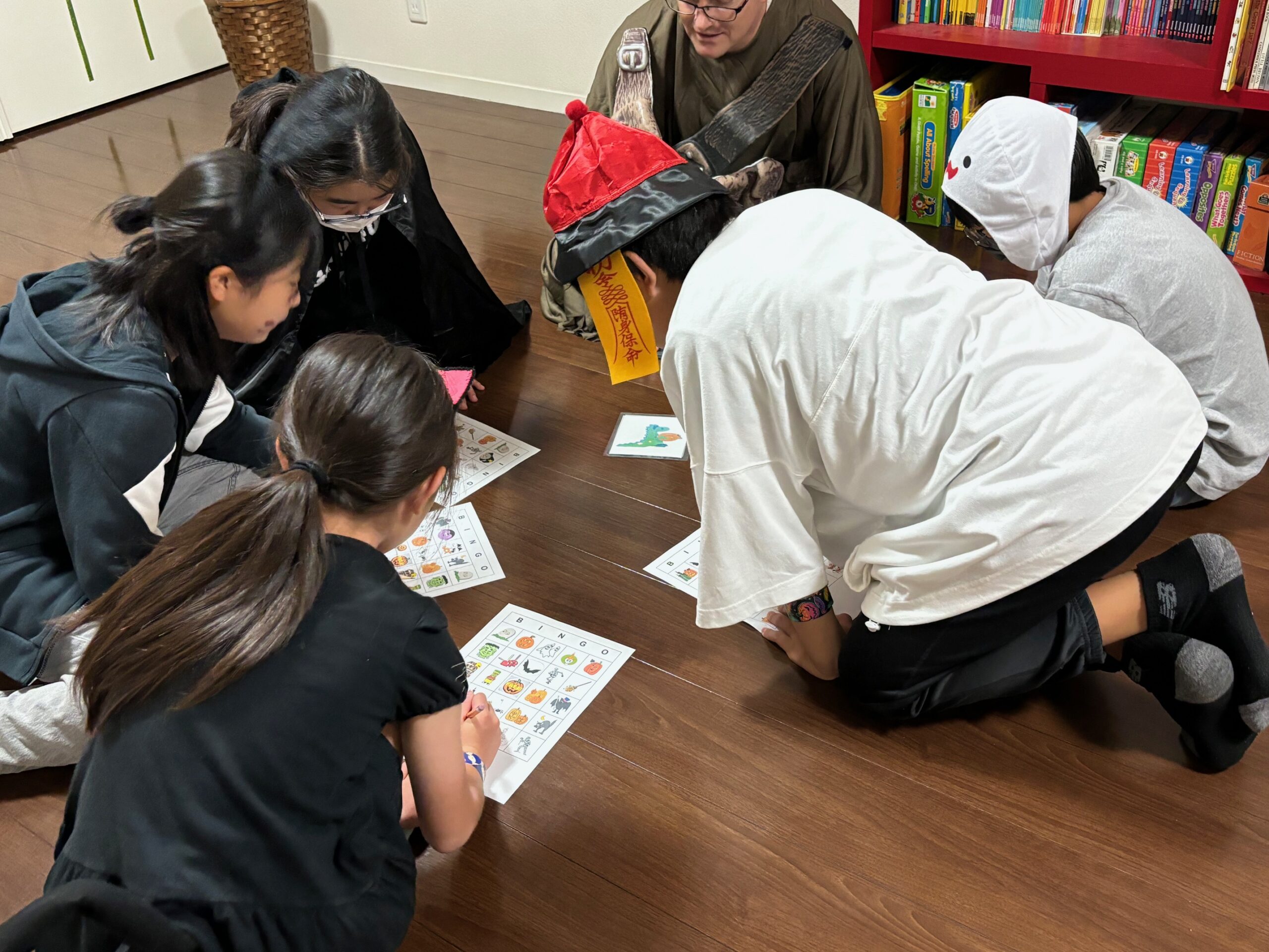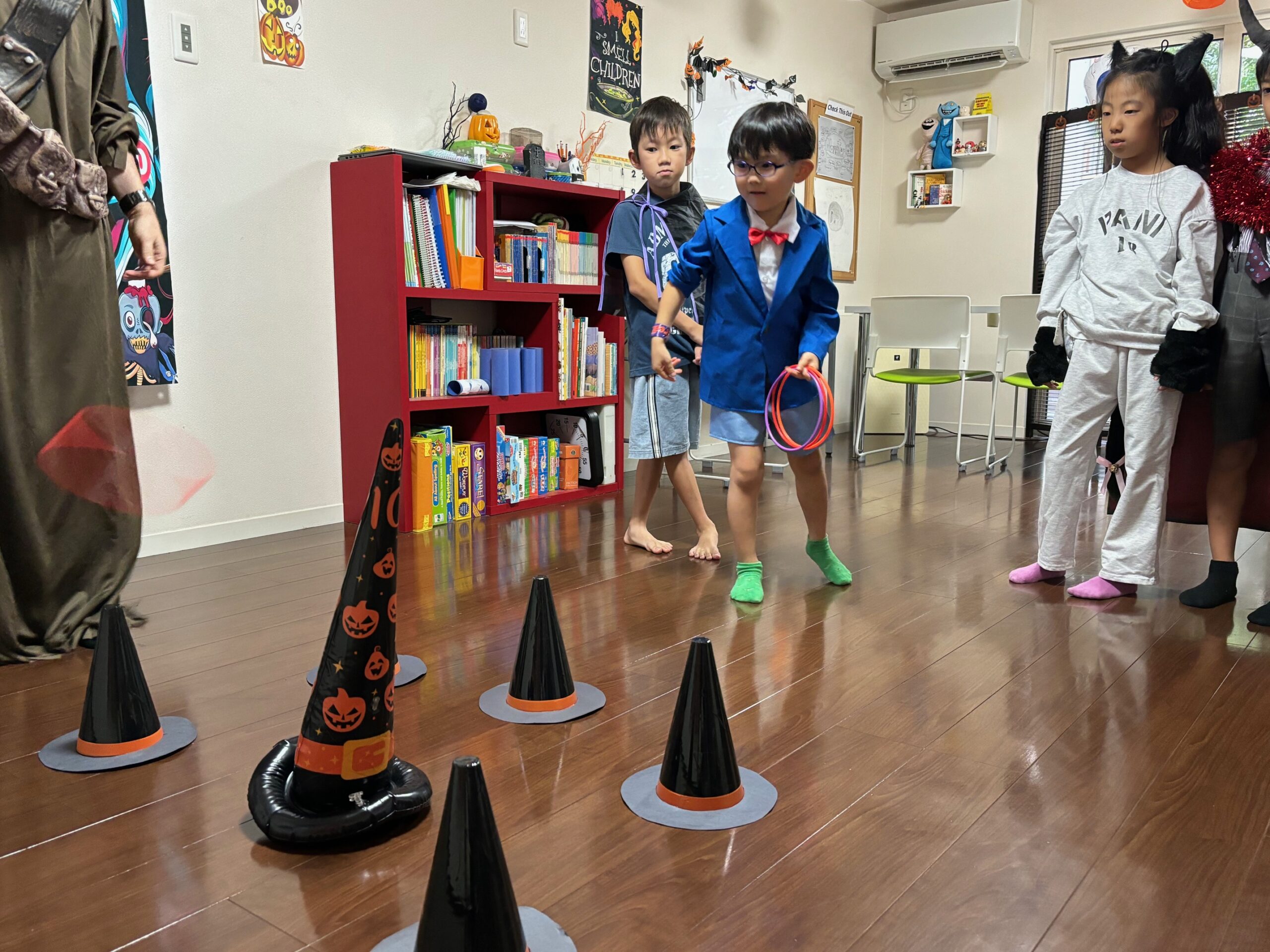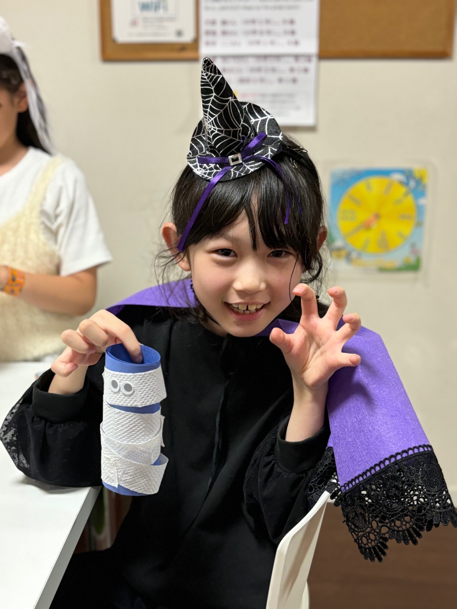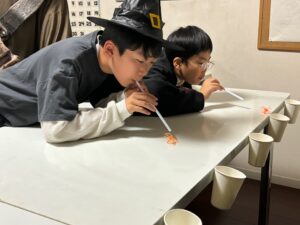 Halloween Wristbandをして気分を高めてから、Killer Clown Ball TossやSpider Race、Witch’s Hat Ring Toss、Making Paper Mummy、ビンゴをして賑やかな時間を過ごしました。