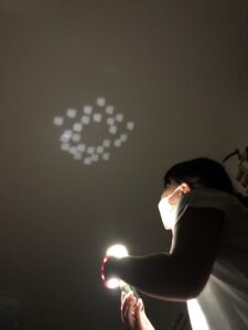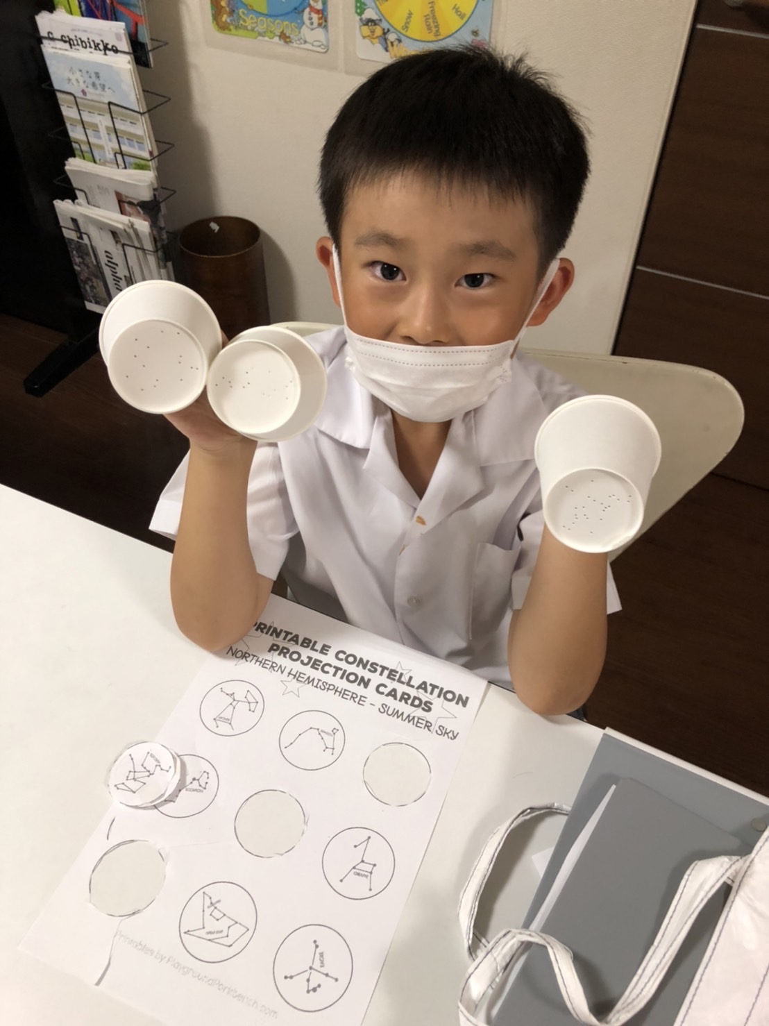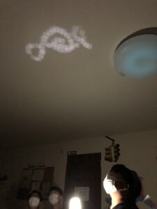 プロジェクター作りに必要な表現以外に、星座や流れ星などの名前、「明るい・暗い」などの表現を覚えて練習しました。